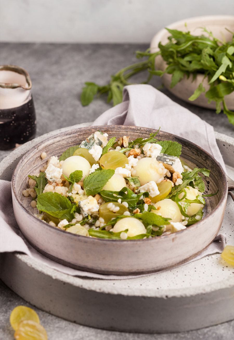 Balsamic-honey reduction, oven baked potato and watercress salad